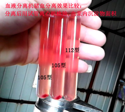 血液分離機(jī)分離的大部分都是豬血,豬血漿是一種淡黃色透明液體,約占豬血總量的60%,血漿中含8%的蛋白質(zhì);紅細(xì)胞濃縮物約40%細(xì)胞成分主要是血紅蛋白和血紅素SOD等。